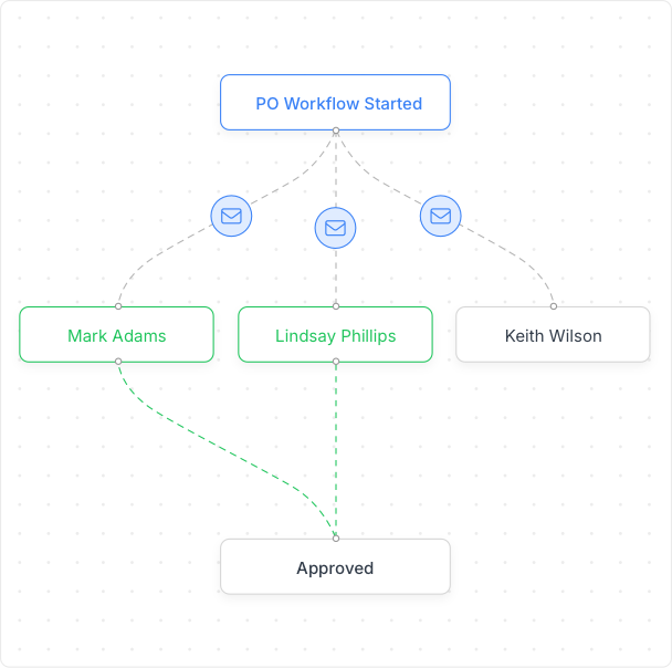 SavviAIX streamlines the process of purchase order approvals by empowering you to easily define your organization's unique approval hierarchies. You map out the custom workflow and the system initiates this process for every new PO, ensuring the right people are brought in at the right time, every time.
