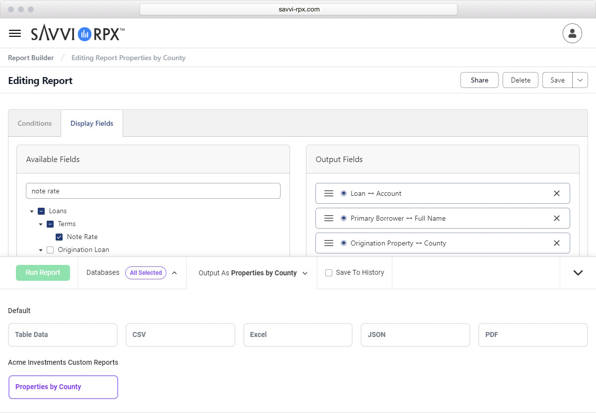 For Spreadsheets you can add all of your formulas, charts, graphs and let SavviRPX dynamically populate the data columns from the reports you setup. PDF outputs can be configured to fill in PDF forms you create in Acrobat.