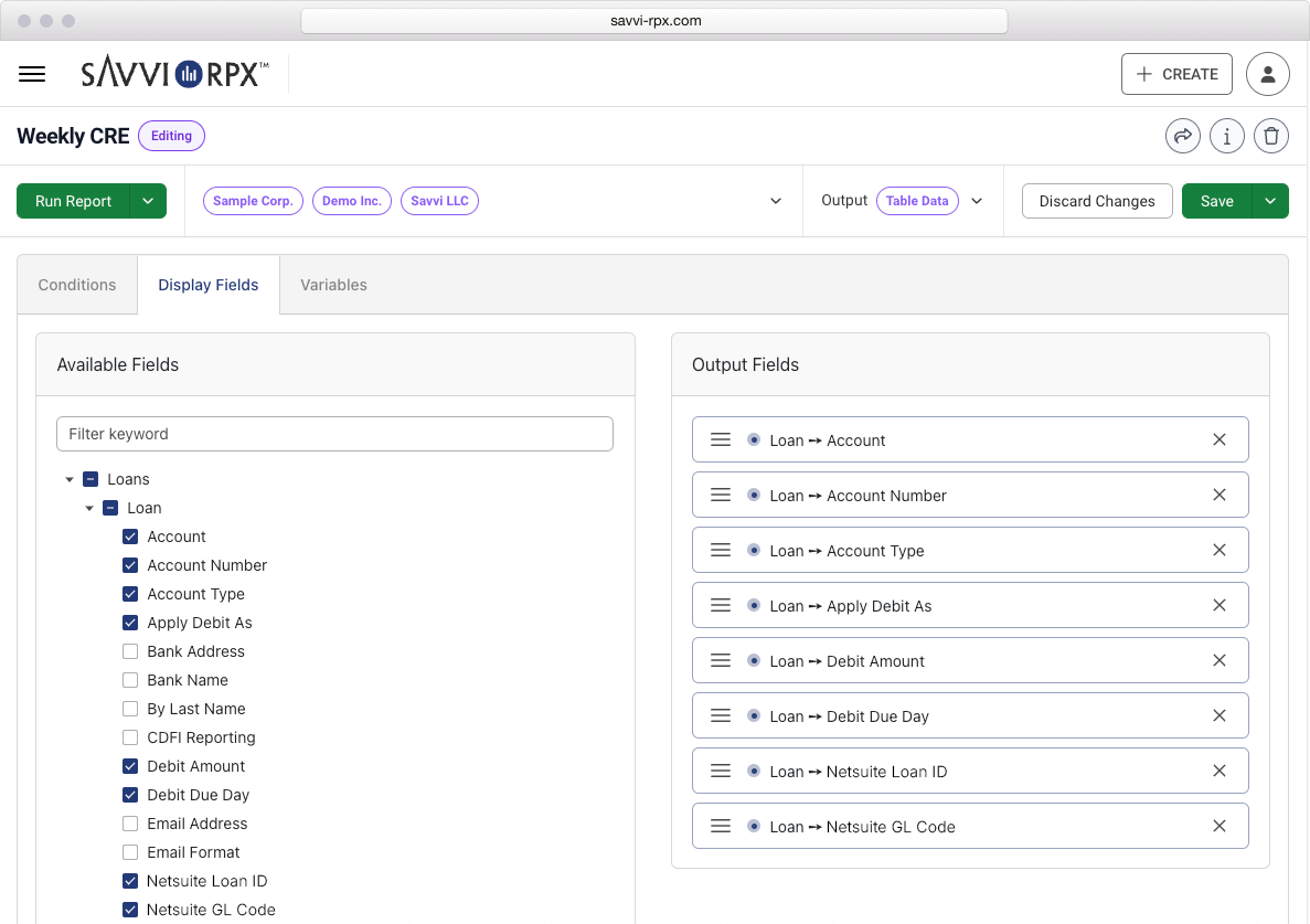 For each type of report, the ability to select fields, in the order of your choosing, that are organized in a user-friendly way.